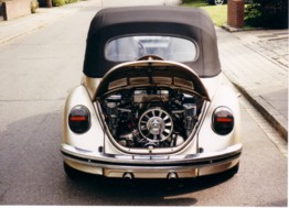 Von einer Kfz-Werkstatt aus Büchen kaufte ich drei Type 4 2.0 L GB Motoren für 240 DM. Er verkaufte leider nur alle drei zusammen. Na ja, einige Ersatzteile zu haben ist ja auch nicht schlecht. Beim Maikäfertreffen in Hannover fand ich gebrauchte Zylinderköpfe vom W Motor, die passend von 1700 ccm auf 2000 ccm aufgebohrt waren. Bei einer Verdichtung von 10:1. Bei diesen Teilen habe ich ein echtes Schnäppchen geschlagen. Zusammen für alles nur 180 DM. Die Zylinderköpfe habe ich dann zum Bearbeiten weggeschickt. Sie bekamen erweiterte Kanäle mit einer Ventilbestückung von 44 mm im Einlass und 37 mm im Auslass, sowie eine Brennraumoptimierung, der anschließend auch poliert wurde. Die Ventilfedern wurden dabei gegen doppelte Ventilfedern getauscht. Der ganze Spaß war etwas teurer. Alles zusammen hat ca. 1200 DM gekostet. Bei der Nockenwelle habe ich mich für eine WEB-CAM 270° entschieden, da der Händler bei mir in der Nähe ist. Zu der Nockenwelle habe ich passende gehärtete WEB-CAM Stößel und verstärkte GENE BERG Chrom Moly Stößelstangen besorgt, damit ich im Ventiltrieb nie wieder Probleme bekomme. Die Kolben und Zylinder habe ich ebenfalls neu besorg. Ich habe sie als Set mit passenden Pleuel gekauft. Die Kolben stammen von der Fa. Mahle mit Kolbenbolzen von 22 mm. Gekürzte Wärmetauscher mit passendem Type 1 Style Auspuff und Lüfterrad mit einer neuen Porsche Lichtmaschine besorgte ich aus dem Bugnet. Zusammen ca. 2000 DM. Die 44er Weber Doppelvergaser mit passendem Gestänge besorgte ich lieber neu, da dieses sehr empfindliche Teile sind. Für die Kraftübertragung zum Getriebe habe ich eine 200 Sportkupplung gewählt, da man bei dieser Kupplung nichts an der Getriebeglocke ändern muss.
